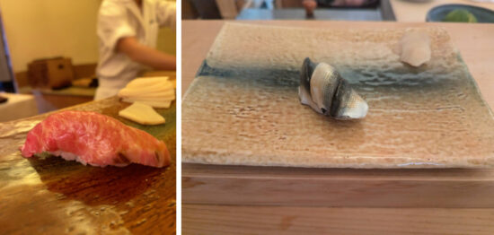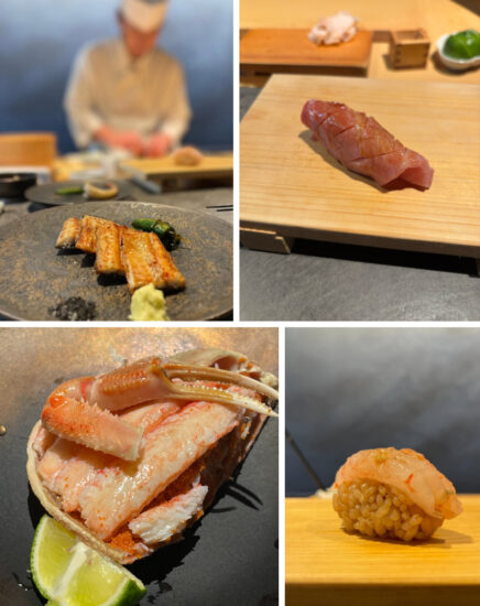 お昼と夜で異なるコース構成となっており、ディナーではより豪華な食材を使用した寿司を楽しめます。