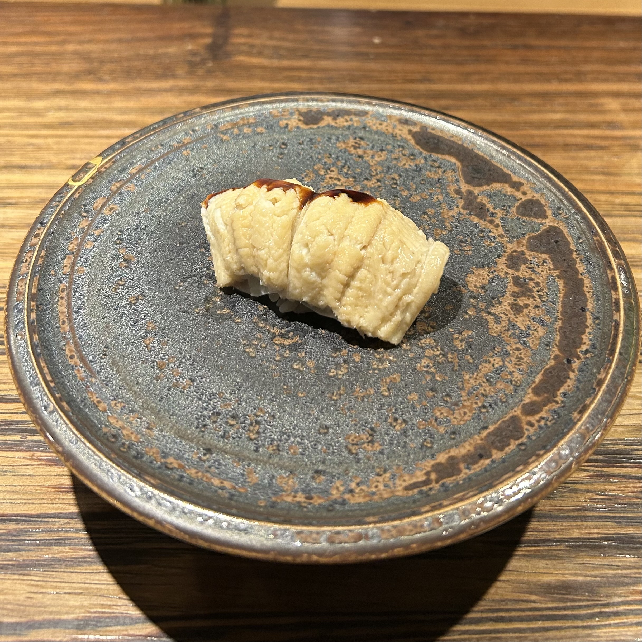 握りでは、骨の食感が心地よいアナゴと、ふわっとほどける煮アナゴの食べ比べが楽しく、どちらも甲乙つけがたい美味しさでした。