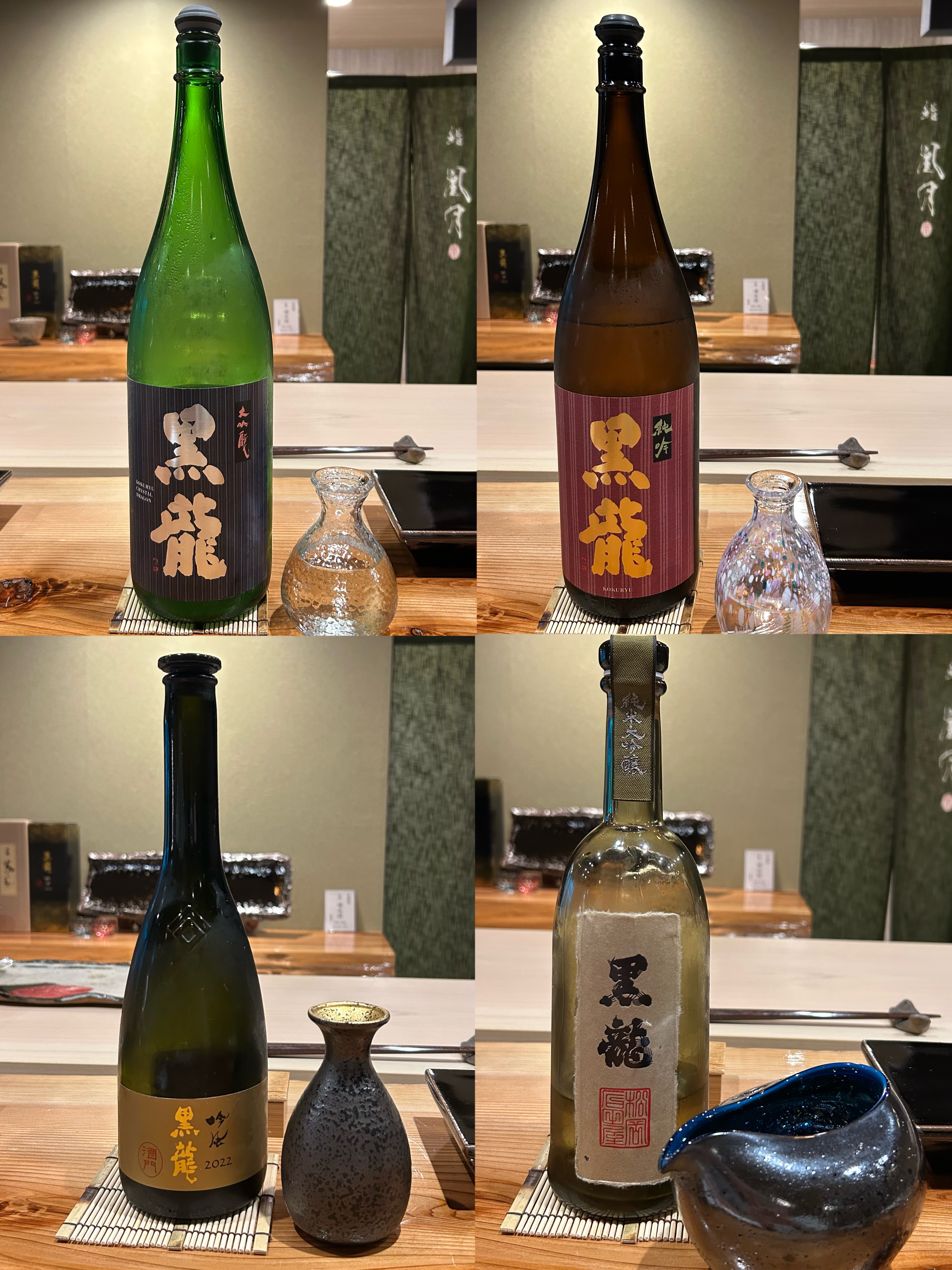 日本酒のラインナップも非常に豊富で、特に「黒龍」シリーズは揃えが充実しており、料理との相性も抜群。